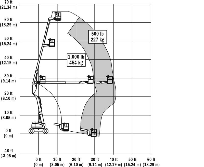 600A發(fā)動(dòng)機(jī)驅(qū)動(dòng)曲臂式高空作業(yè)平臺(tái)工作范圍圖