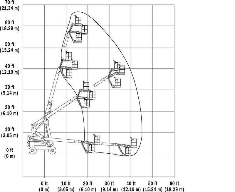 M600J電動(dòng)曲臂式高空作業(yè)平臺(tái)工作范圍圖